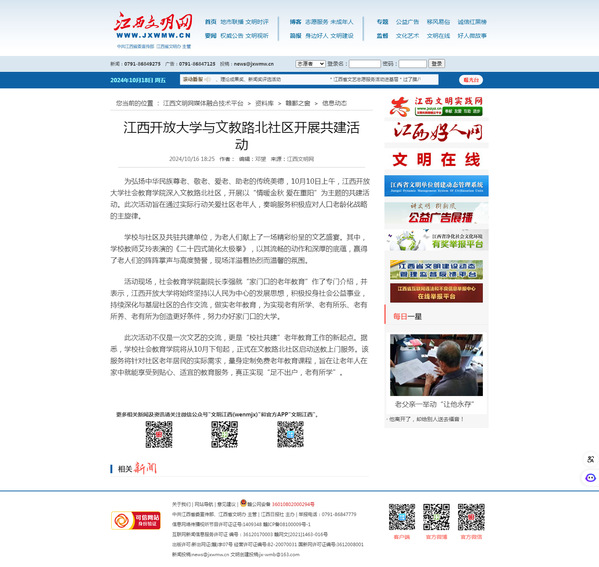 为弘扬中华民族尊老、敬老、爱老、助老的传统美德,10月10日上午,9999js金沙老品牌社会教育学院深入文教路北社区,开展以“情暖金秋 爱在重阳”为主题的共建活动。此次活动旨在通过实际行动关爱社区老年人,奏响服务积极应对人口老龄化战略的主旋律。