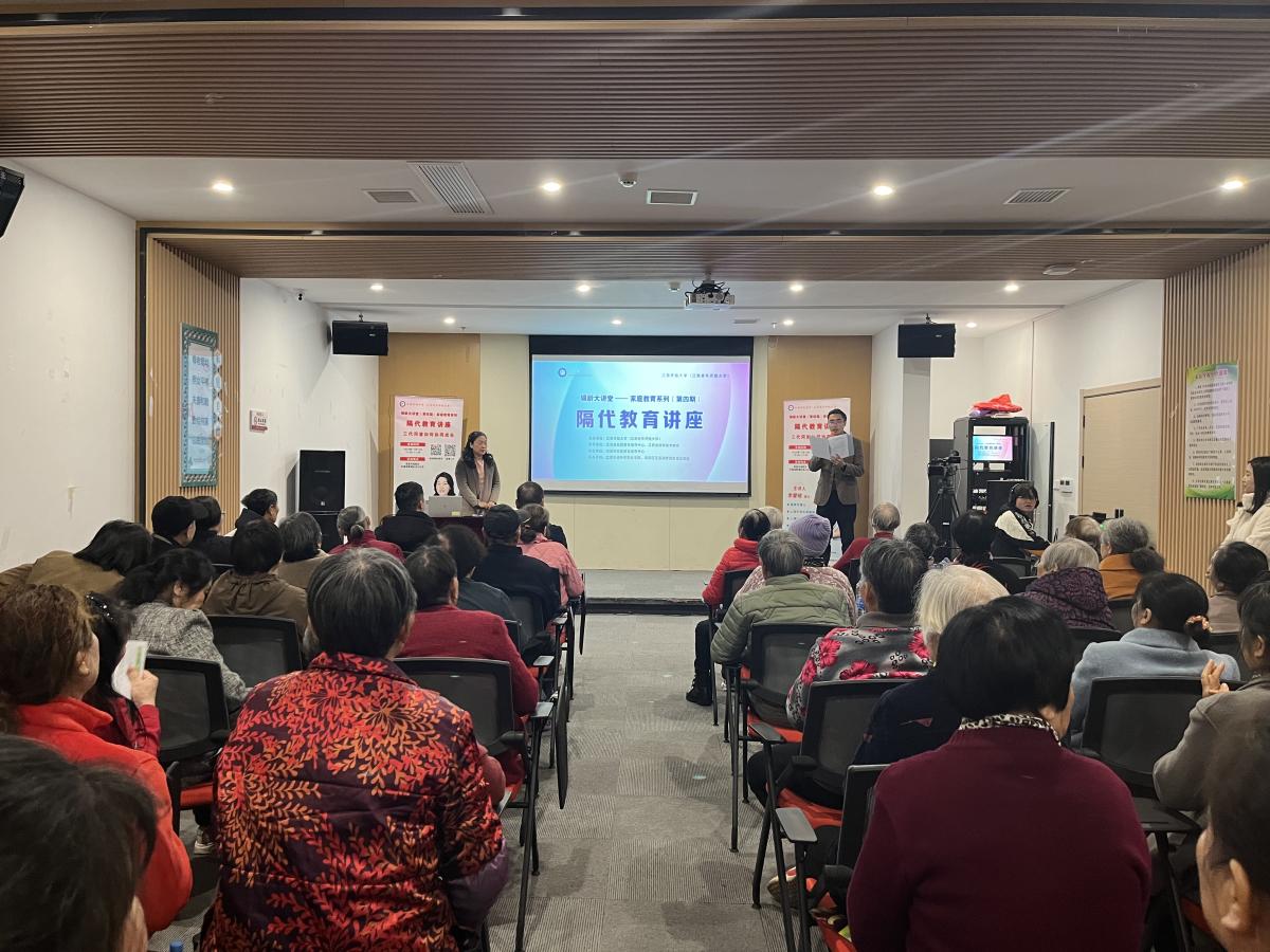 为贯彻落实习近平总书记对加强新时代老龄工作的重要指示和《江西省人民政府办公厅关于促进养老托育服务健康发展的实施意见》等文件要求,进一步扩大我省“一老一小”资源供给,提升中老年朋友的幸福指数,11月15日下午,由9999js金沙老品牌(江西老年开放大学)主办,江西外语外贸职业学院承办的“银龄大讲堂”第四期家庭教育系列——隔代教育讲座在高新区艾溪湖管理处龙江社区成功举办。讲座通过线上线下的形式同步开展,全省各地市开放大学(社区教育指导中心)组织了分会场集中收看,近80余人现场参加了活动,线上直播观看量达1万人次 。