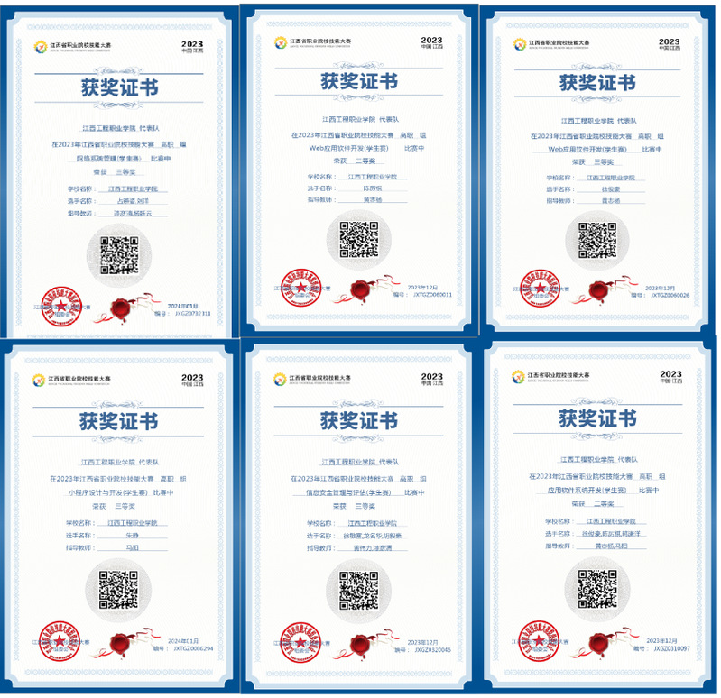 2023年江西省职业院校技能大赛于2023年11月17日至2024年1月26日在全省85所院校成功举办。此次大赛共开赛179个赛项(中职组74个,高职组105个),共4485支队伍(中职2223支,高职2262支),逾9800名选手参赛。我校智能技术学院师生在本次大赛中表现优异,斩获二等奖2项、三等奖4项