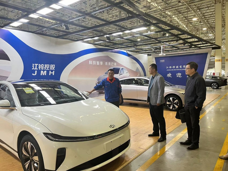 张世麒一行首先参观了江铃控股有限公司的总装车间和新能源汽车展厅,详细了解汽车冲压、焊装、涂装、总装、检测和营销等方面的业务流程与作业内容。
