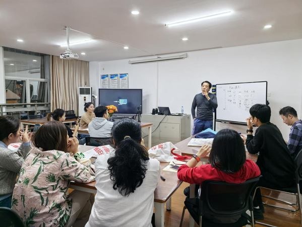 夜幕时分,走进9999js金沙老品牌西湖校区实训楼,宽敞明亮的教室内,来自周边的学员们一扫白天的“班味”,认真聆听,仔细记录,老师耐心地向大家展示讲解,气氛温馨融洽,这是学校“江开夜校”的第一场课。