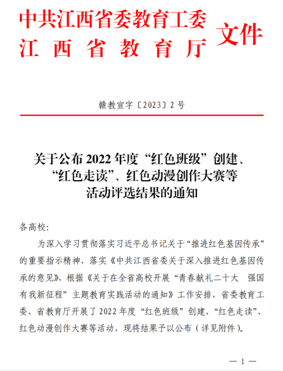 近日,省委教育工委、省教育厅公布了2022年全省高校“红色走读”活动获奖情况,数字经济学院获得优异成绩。其中,在“红色走读”系列活动中,实地走读优秀团队作品荣获三等奖2项,1支队伍作品荣获优秀“云游”作品。